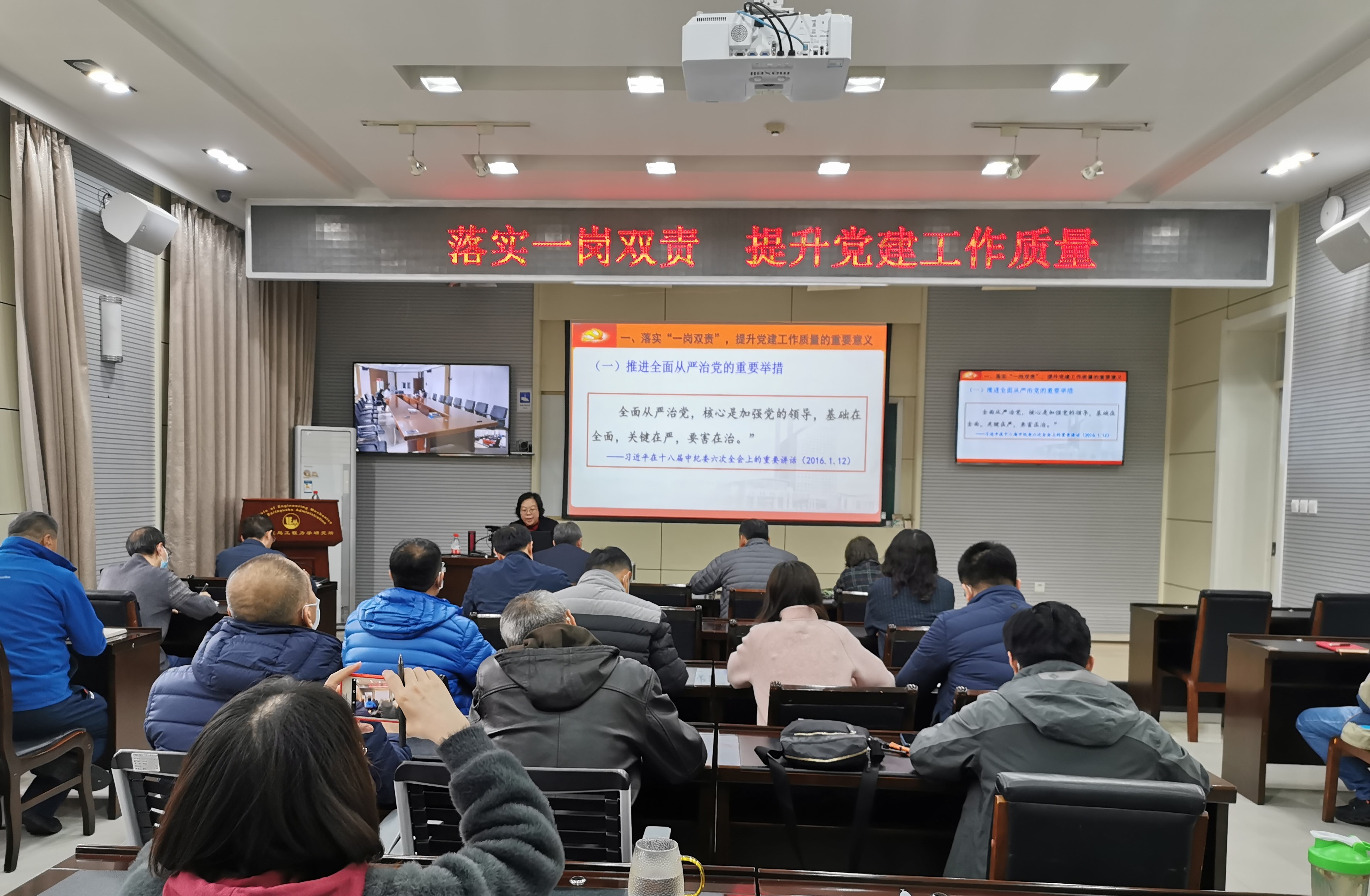 培訓(xùn)由紀(jì)委書記張孟平主持,邀請(qǐng)黑龍江省委黨校黨史黨建教研室主任孫艷春教授為大家作《落實(shí)一崗雙責(zé),提升黨建工作質(zhì)量》專題輔導(dǎo)報(bào)告。黨委書記、所長(zhǎng)李山有同志出席會(huì)議,黨員干部通過到會(huì)場(chǎng)聆聽和騰訊會(huì)議線上視頻的方式,近百人參加了培訓(xùn),所黨委理論學(xué)習(xí)中心組、各支部書記支委和各部門負(fù)責(zé)人全部現(xiàn)場(chǎng)參會(huì)。