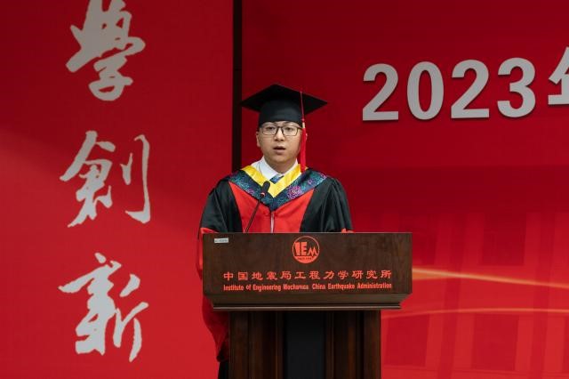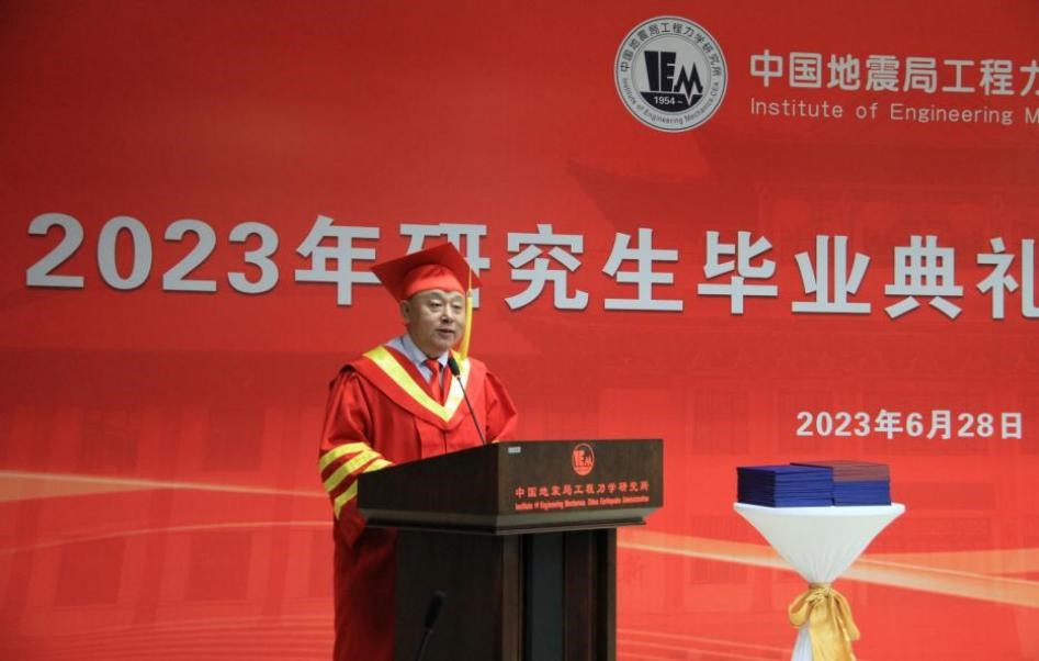 發布時間: 2023-06-30 點擊數量:52746月28日下午,中國地震局工程力學研究所2023年畢業典禮暨學位授予儀式在主樓四樓會議室隆重舉行。所學位評定委員會主任孫柏濤,黨委書記、所長李山有,黨委副書記張孟平,紀委書記孔繁鈺,副所長張令心、溫瑞智出席學位授予儀式。溫瑞智主持儀式。