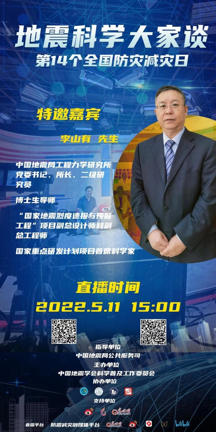 在線訪談。5月11日,我所黨委書記、所長李山有研究員和副所長張令心研究員受邀參加由中國地震學會科學普及工作委員會主辦的“地震科學大家談”特別活動。