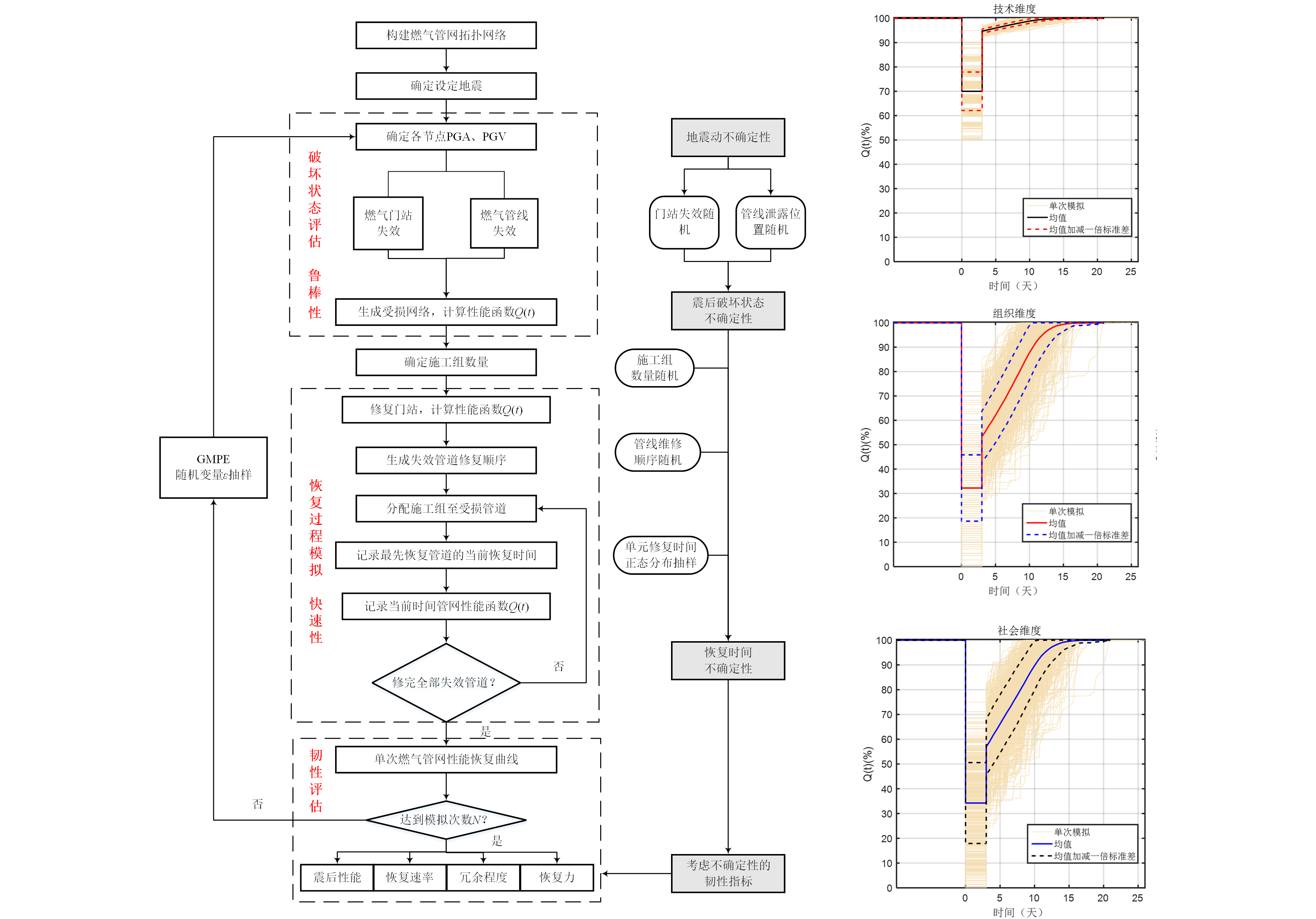 圖2 城市燃?xì)夤芫W(wǎng)抗震韌性定量評估流程與結(jié)果