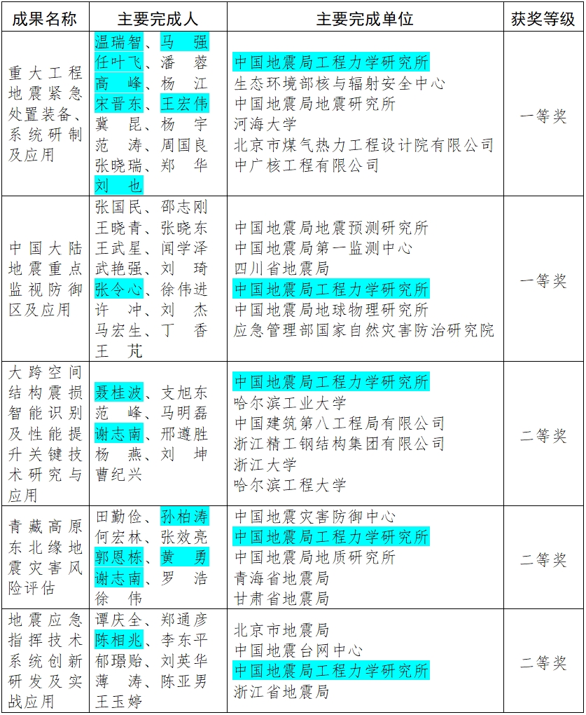 發布時間: 2025-07-17 點擊數量:3993近日,中國地震局公布了2025年度防震減災科研成果獎評選結果,我所作為牽頭單位完成的成果獲一等獎1項、二等獎1項,作為參與單位獲一等獎1項、二等獎2項。